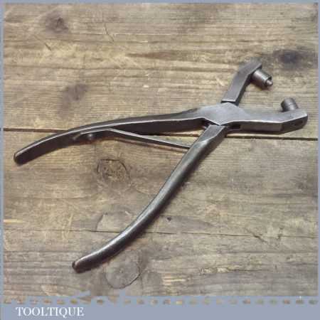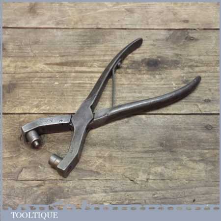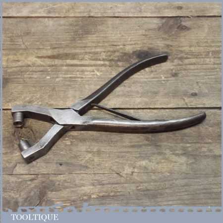 Vintage leather working Eyelet Pliers marked Highgate and crown so suggests it’s an ex-Ministry tool. In good working order and made from solid steel unlike the modern types
