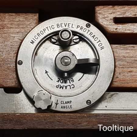 Vintage Hilger & Watts Ltd London No: 93347 Microptic Optical Bevel Protractor in a mahogany case in good used condition.