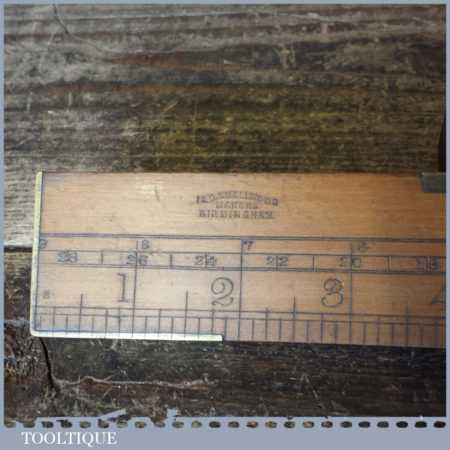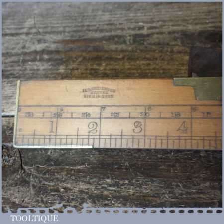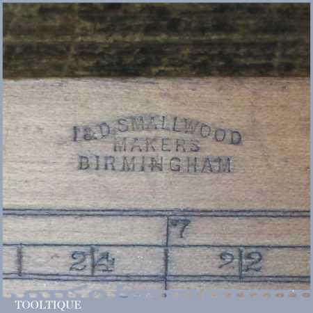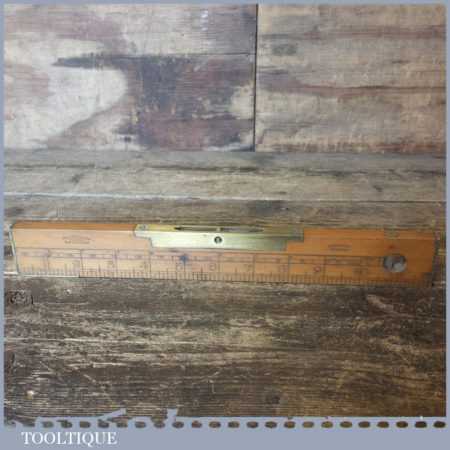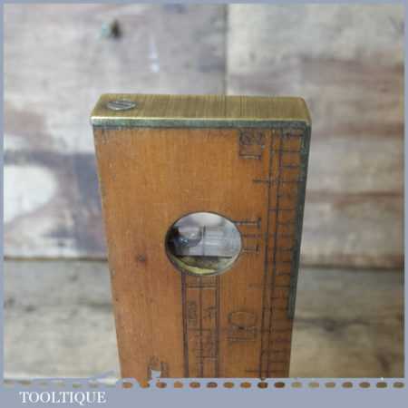 Vintage I & D Smallwood boxwood and brass 12” calibrated spirit level with original clear bubble tubes in good used condition. Note: the level hasn’t been tested and may require resetting in putty if intended for use.