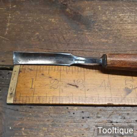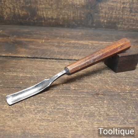 Vintage I&H Sorby ¹⁷⁄₃₂” in-cannel curved woodcarving gouge chisel with mahogany handle in good used condition, fully refurbished sharpened and honed ready for use.