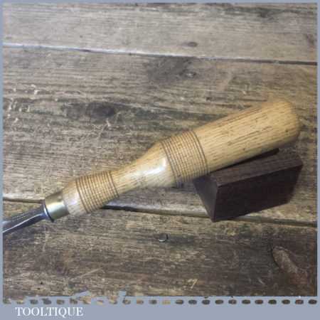 Vintage I. & H. Sorby 3/8” curved wood carving gouge chisel with ash handle in good used condition, fully refurbished sharpened and honed ready for use.