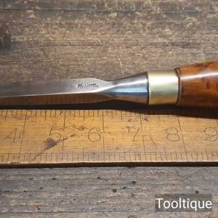 Vintage I. Sorby ½” mortice chisel with a boxwood handle, fully refurbished ready for use and in good used condition. All refurbished chisels are water cooled during the sharpening & flattening process to ensure the tempering is not affected.