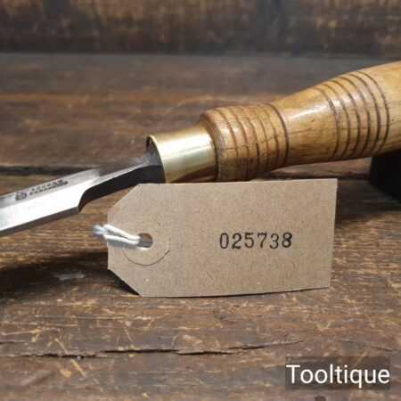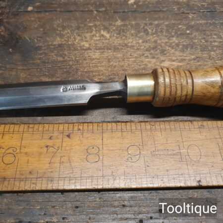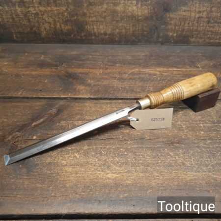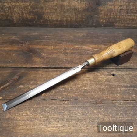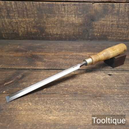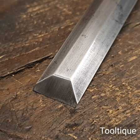 The chisel has been checked to ensure the tang is seated properly and the handle is solid and fit for use. All refurbished chisels are water cooled during the sharpening & flattening process to ensure the tempering is not affected