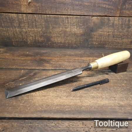 The chisel has been checked to ensure the tang is seated properly and the handle is solid and fit for use. All refurbished chisels are water cooled during the sharpening & flattening process to ensure the tempering is not affected