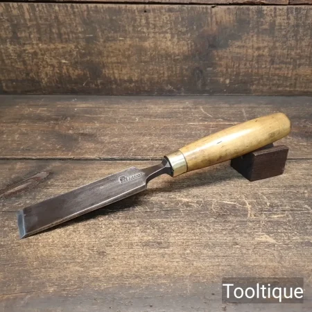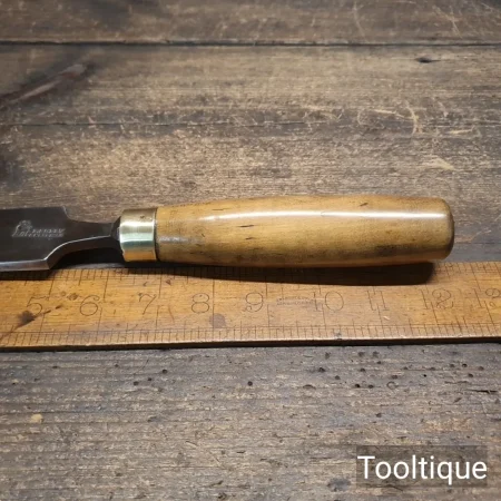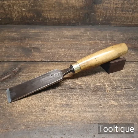 Vintage I. Sorby 1 ½” Carpenters Forged Laminated Steel Firmer Chisel with a Boxwood Handle, refurbished ready for use and in good used condition. All refurbished chisels are water cooled during the sharpening & flattening process to ensure the tempering is not affected.