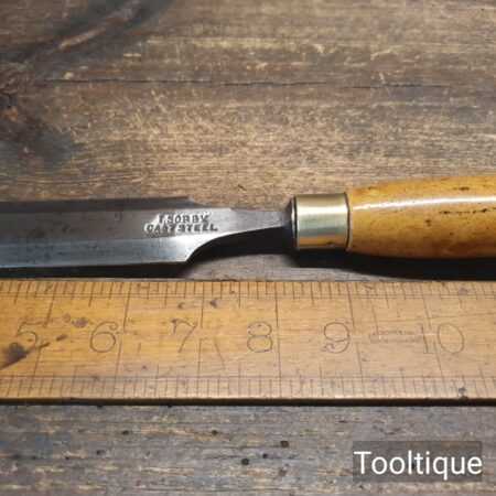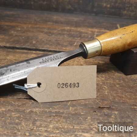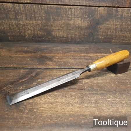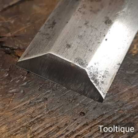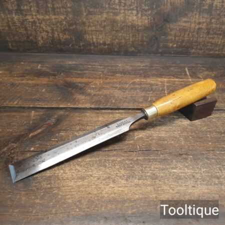 The chisel has been checked to ensure the tang is seated properly and the handle is solid and fit for use. All refurbished chisels are water cooled during the sharpening & flattening process to ensure the tempering is not affected