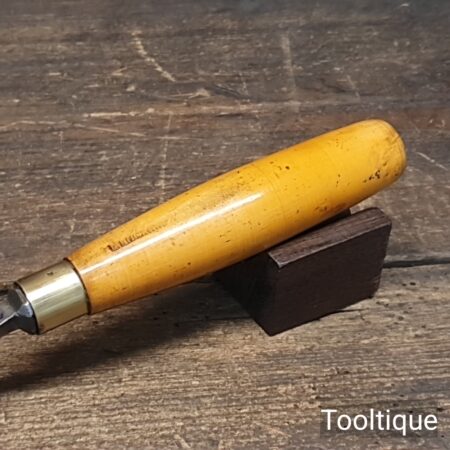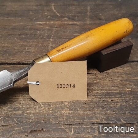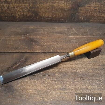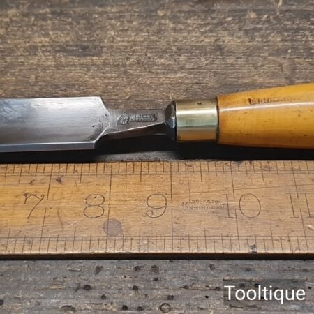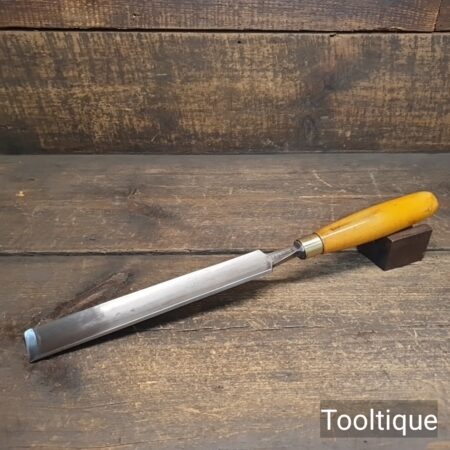 Vintage I. Sorby 1 1/8” patternmakers’ long series incannel Gouge Chisel with a Boxwood handle, refurbished ready for use and in good used condition. Note: Handle Crack resin treated and filled.