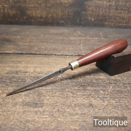 Vintage I. Sorby 1/16” Wide Firmer Chisel with a Mahogany Handle, refurbished ready for use and in good used condition. All refurbished chisels are water cooled during the sharpening & flattening process to ensure the tempering is not affected.