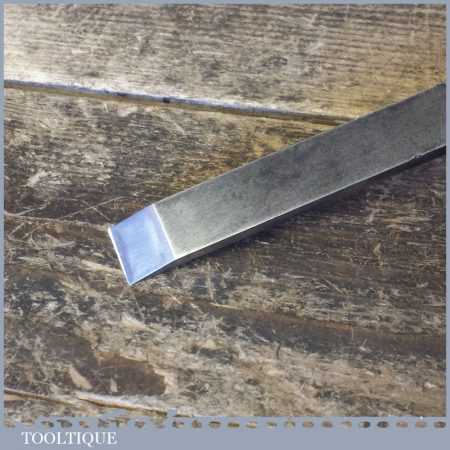 The chisel has been checked to ensure the tang is seated properly and the handle is solid and fit for use. All refurbished chisels are water cooled during the sharpening process to ensure the tempering is not affected. These old cast steel chisels are hand forged and far superior in quality because of the high carbon steel that was used which produces a keener edge, this was also generally used throughout the full length.