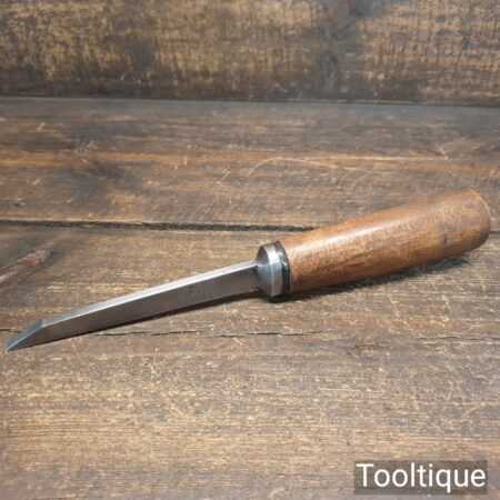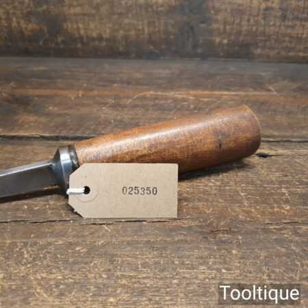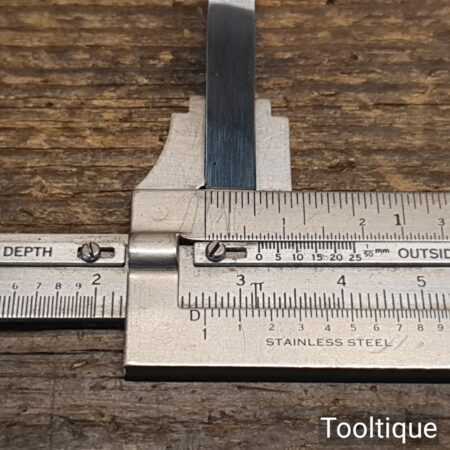 The chisel has been checked to ensure the tang is seated properly and the handle is solid and fit for use. All refurbished chisels are water-cooled during the sharpening & flattening process to ensure the tempering is not affected.