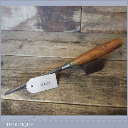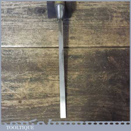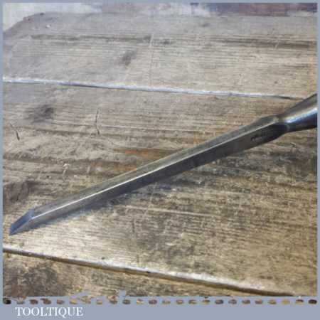 The chisel has been checked to ensure the tang is seated properly and the handle is solid and fit for use. All refurbished chisels are water cooled during the sharpening process to ensure the tempering is not affected. These old cast steel chisels are hand forged and far superior in quality because of the high carbon steel that was used which produces a keener edge, this was also generally used throughout the full length.