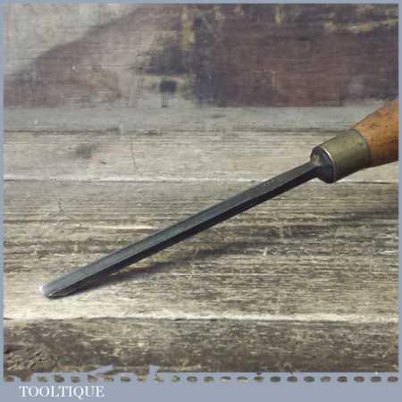Vintage I. Sorby 1/4” straight wood carving gouge chisel with beechwood handle in good used condition, fully refurbished sharpened and honed ready for use.