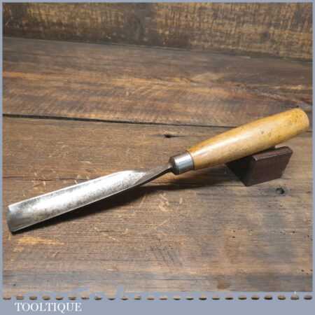 Vintage I. Sorby 1” straight woodcarving in-cannel gouge chisel with beechwood handle in good used condition, fully refurbished sharpened and honed ready for use.