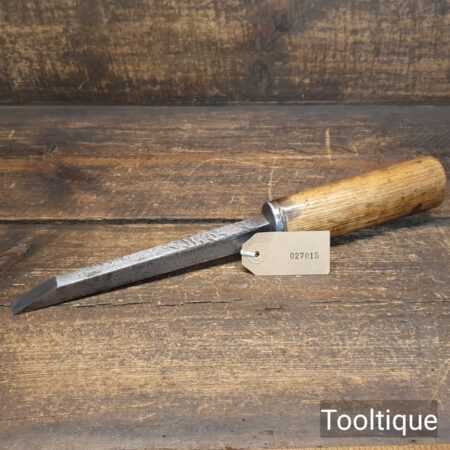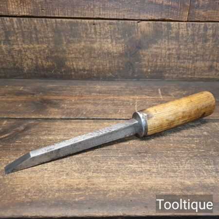 Vintage I. Sorby 19/32” cast steel mortice chisel with a beechwood handle in good used condition, fully refurbished, sharpened and honed ready for use. The chisel has been checked to ensure the tang is seated properly and the handle is solid and fit for use. All refurbished chisels are water cooled during the sharpening process to ensure the tempering is not affected. Note: Handle did have a crack where it was seated to the tang but this has been resin treated