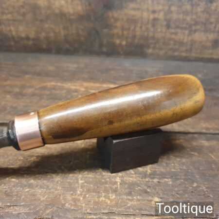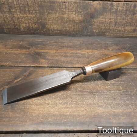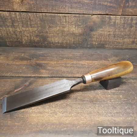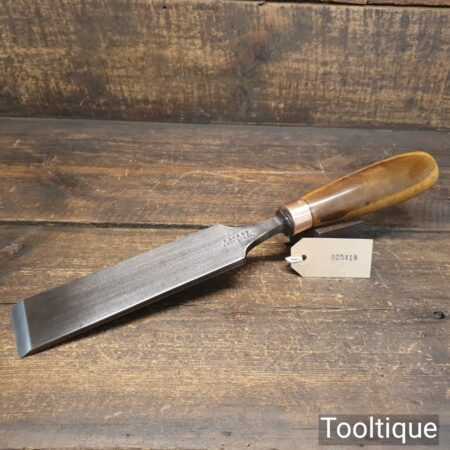 The chisel has been checked to ensure the tang is seated properly and the handle is solid and fit for use. All refurbished chisels are water-cooled during the sharpening & flattening process to ensure the tempering is not affected