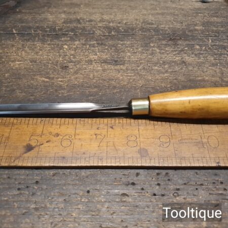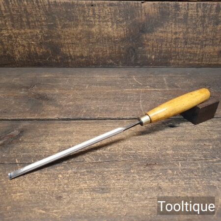Vintage Ward & Payne 3/8” patternmakers’ long series incannel Gouge Chisel with a Boxwood handle, refurbished ready for use and in good used condition. Note: Handle Crack resin treated and filled.