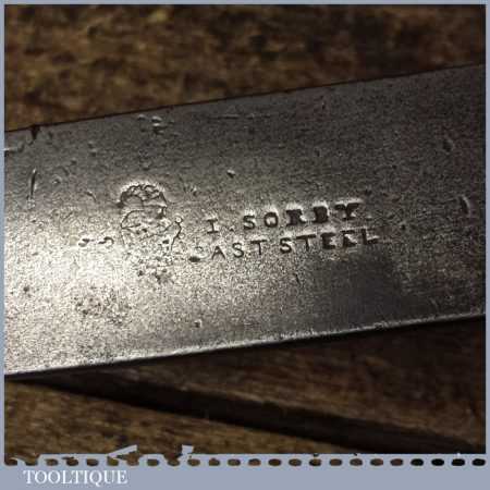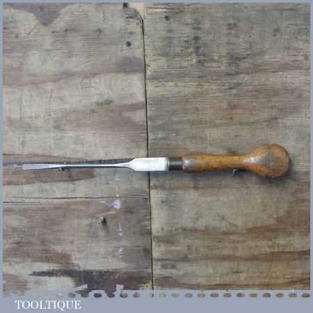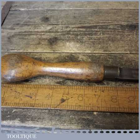 Vintage I. Sorby cabinet maker’s 18” turnscrew screwdriver with beechwood handle and approx a 3/8” tip (stamped GPO and dated 1913) in good used condition. This has been water cooled during the reshaping process to ensure it retained its original tempering and will work as it would have originally