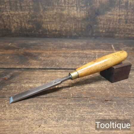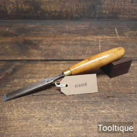 The chisel has been checked to ensure the tang is seated properly and the handle is solid and fit for use. All refurbished chisels are water cooled during the sharpening & flattening process to ensure the tempering is not affected.