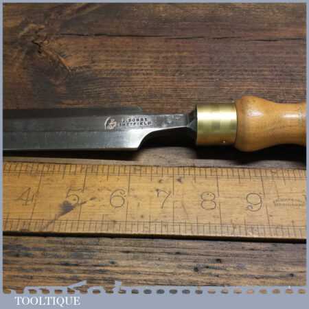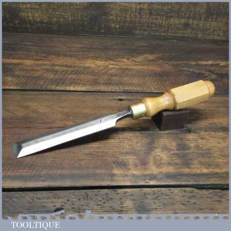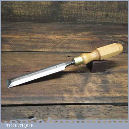The chisel has been checked to ensure the tang is seated properly and the handle is solid and fit for use. All refurbished chisels are water cooled during the sharpening process to ensure the tempering is not affected.
