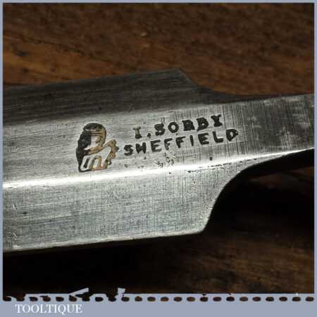 Vintage I. Sorby carpenter’s 1 ¼” laminated steel bevel edge chisel fitted with new London pattern cherrywood handle in good used condition, fully refurbished sharpened and honed ready for use.
