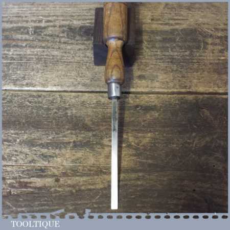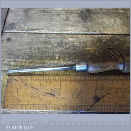 The chisel has been checked to ensure the tang is seated properly and the handle is solid and fit for use. All refurbished chisels are water cooled during the sharpening process to ensure the tempering is not affected. These old cast steel chisels are hand forged and far superior in quality because of the high carbon steel that was used which produces a keener edge, this was also generally used throughout the full length.