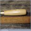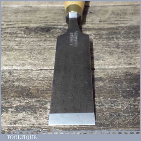 The chisel has been checked to ensure the tang is seated properly and the handle is solid and fit for use. All refurbished chisels are water cooled during the sharpening process to ensure the tempering is not affected. These old cast steel chisels are hand forged and far superior in quality because of the high carbon steel that was used which produces a keener edge, this was also generally used throughout the full length