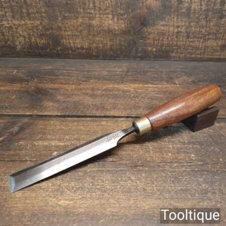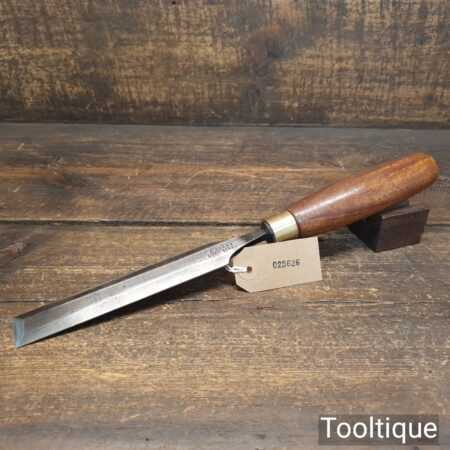 The chisel has been checked to ensure the tang is seated properly and the handle is solid and fit for use. All refurbished chisels are water cooled during the sharpening & flattening process to ensure the tempering is not affected