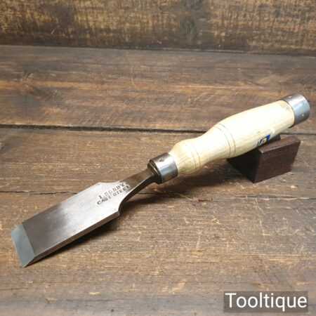 The chisel has been checked to ensure the tang is seated properly and the handle is solid and fit for use. All refurbished chisels are water cooled during the sharpening process to ensure the tempering is not affected.