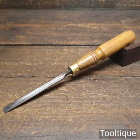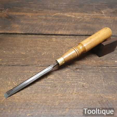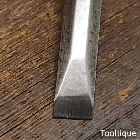 The chisel has been checked to ensure the tang is seated properly and the handle is solid and fit for use. All refurbished chisels are water cooled during the sharpening process to ensure the tempering is not affected.
