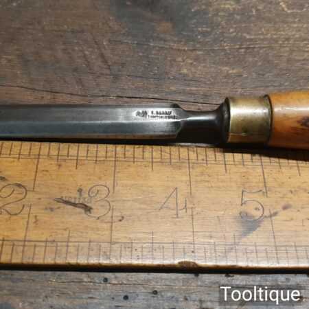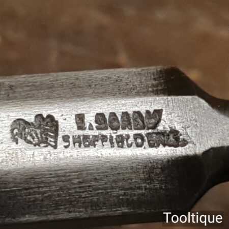 Vintage I. Sorby carpenter’s 1/2” bevel edge chisel with boxwood handle in good used condition, fully refurbished sharpened and honed ready for use.