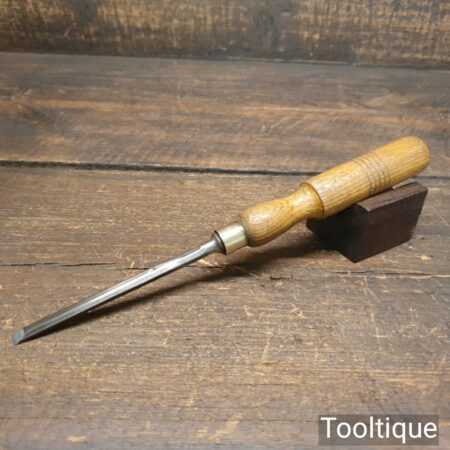Vintage I. Sorby carpenter’s 1/4” bevel edge chisel with ash handle in good used condition, fully refurbished sharpened and honed ready for use.