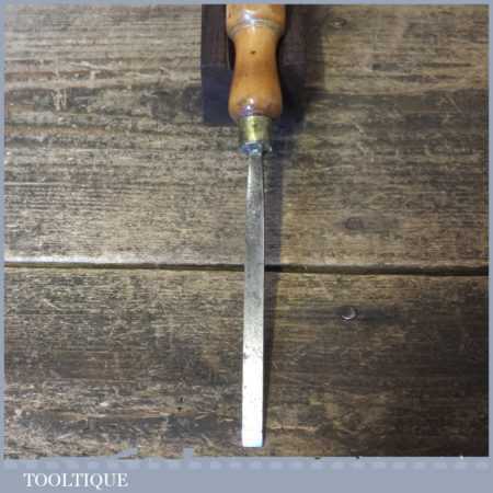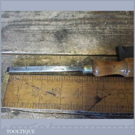 The chisel has been checked to ensure the tang is seated properly and the handle is solid and fit for use. All refurbished chisels are water cooled during the sharpening process to ensure the tempering is not affected. These old cast steel chisels are hand forged and far superior in quality because of the high carbon steel that was used which produces a keener edge, this was also generally used throughout the full length.