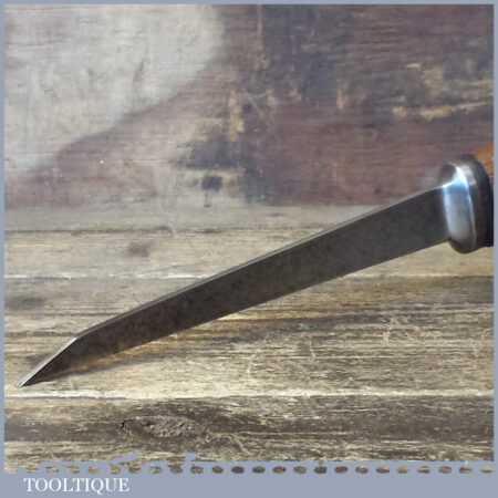 The chisel has been checked to ensure the tang is seated properly and the handle is solid and fit for use. All refurbished chisels are water cooled during the sharpening process to ensure the tempering is not affected.