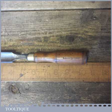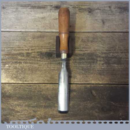 The chisel has been checked to ensure the tang is seated properly and the handle is solid and fit for use. All refurbished chisels are water cooled during the sharpening process to ensure the tempering is not affected. These old cast steel chisels are hand forged and far superior in quality because of the high carbon steel that was used which produces a keener edge, this was also generally used throughout the full length.
