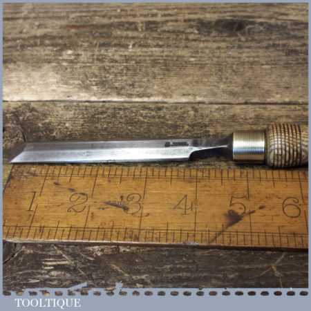 The chisel has been checked to ensure the tang is seated properly and the handle is solid and fit for use. All refurbished chisels are water cooled during the sharpening process to ensure the tempering is not affected. These old cast steel chisels are hand forged and far superior in quality because of the high carbon steel that was used which produces a keener edge, this was also generally used throughout the full length.