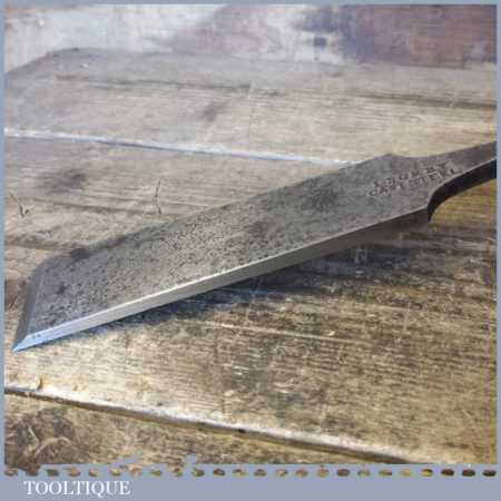 The chisel has been checked to ensure the tang is seated properly and the handle is solid and fit for use. All refurbished chisels are water cooled during the sharpening process to ensure the tempering is not affected. These old cast steel chisels are hand forged and far superior in quality because of the high carbon steel that was used which produces a keener edge, this was also generally used throughout the full length.