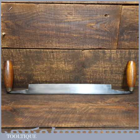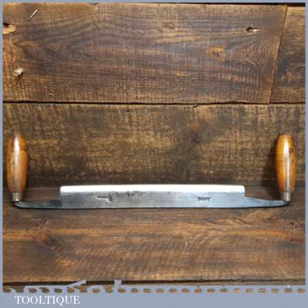 Vintage I. Sorby carpenter’s drawknife with a 12” cutting edge and beechwood handles, sharpened and honed ready for use and in good used condition.