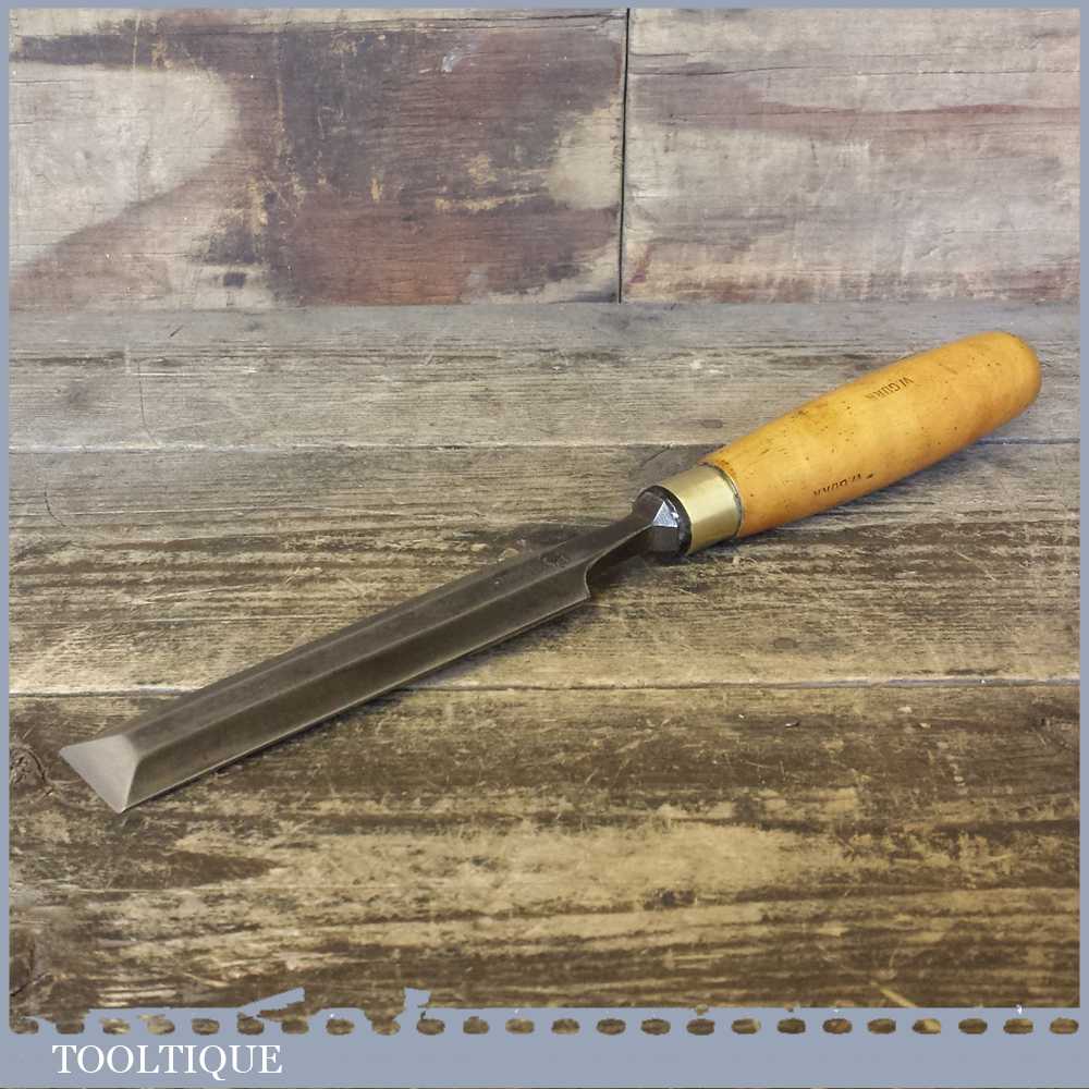 Vintage I Sorby (Mr Punch Brand) 1 ¼” wide bevel edge chisel with boxwood handle, it has been sharpened and honed ready for use. The chisel holds a keen edge and is constructed to a high standard with high carbon steel along the whole length. Very few manufacturers make tools to this standard nowadays and if they are, this would be reflected in the prices they charge. Note: All the chisels are water cooled during the sharpening process.