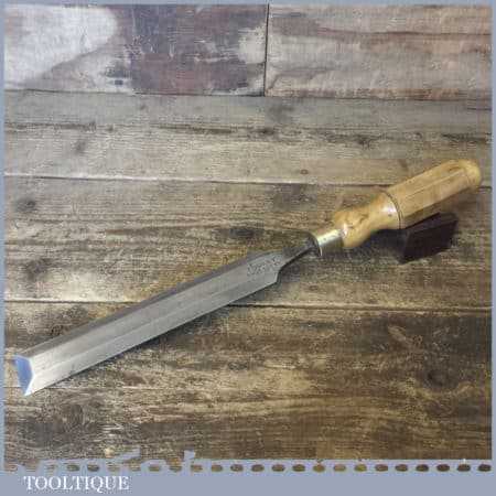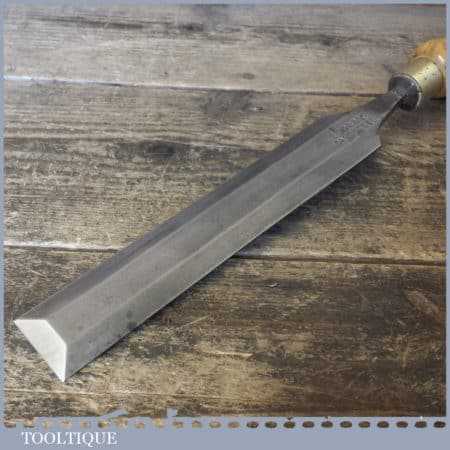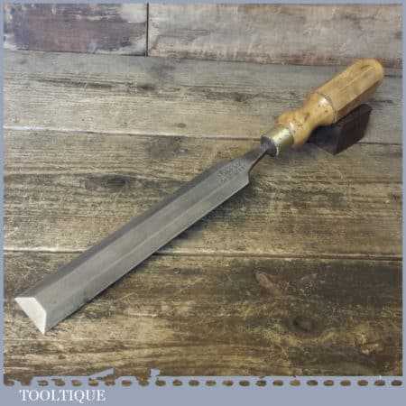 The chisel has been checked to ensure the tang is seated properly and the handle is solid and fit for use. All refurbished chisels are water cooled during the sharpening process to ensure the tempering is not affected. These old cast steel chisels are hand forged and far superior in quality because of the high carbon steel that was used which produces a keener edge, this was also generally used throughout the full length.