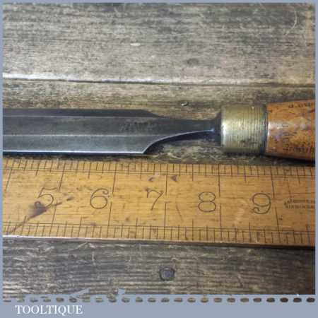 The chisel has been checked to ensure the tang is seated properly and the handle is solid and fit for use. All refurbished chisels are water cooled during the sharpening process to ensure the tempering is not affected. These old cast steel chisels are hand forged and far superior in quality because of the high carbon steel that was used which produces a keener edge, this was also generally used throughout the full length.