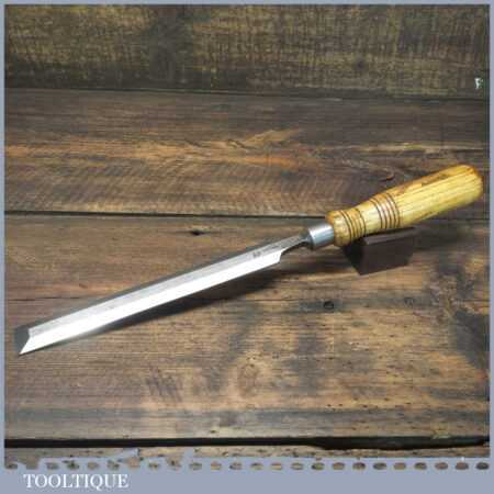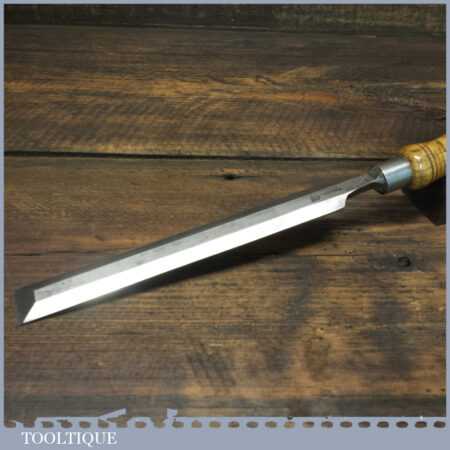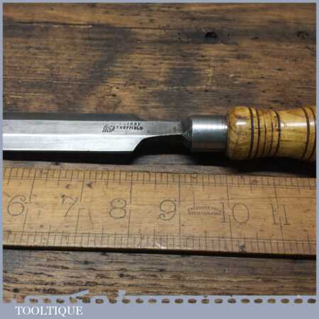 The chisel has been checked to ensure the tang is seated properly and the handle is solid and fit for use. All refurbished chisels are water cooled during the sharpening process to ensure the tempering is not affected.