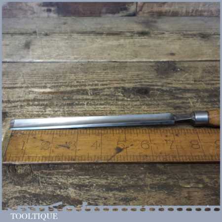 Vintage I. Sorby pattern makers 5/8” in-cannel firmer gouge paring chisel with ash handle in good used condition, fully refurbished sharpened and honed ready for use. The chisel has been checked to ensure the tang is seated properly and the handle is solid and fit for use. All refurbished chisels are water cooled during the sharpening process to ensure the tempering is not affected.
