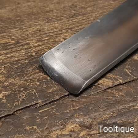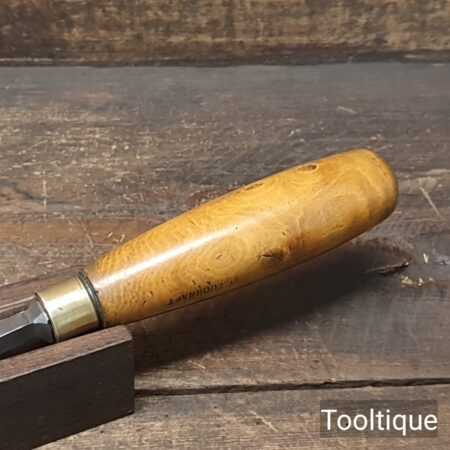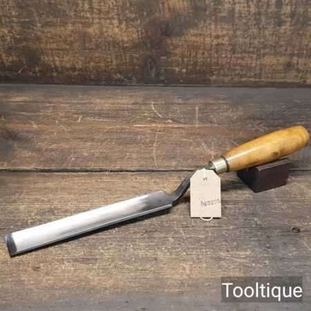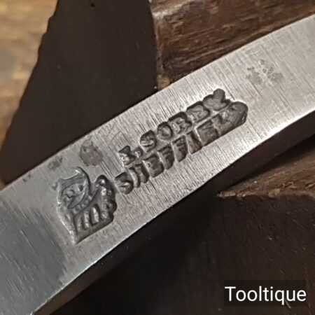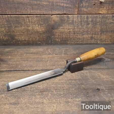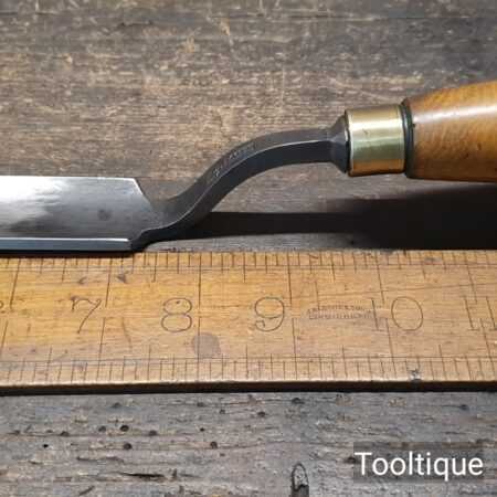 Vintage I. Sorby Patternmakers 1 1/8” Long Series Cranked Gouge Chisel with a Boxwood Handle, refurbished ready for use and in good used condition.