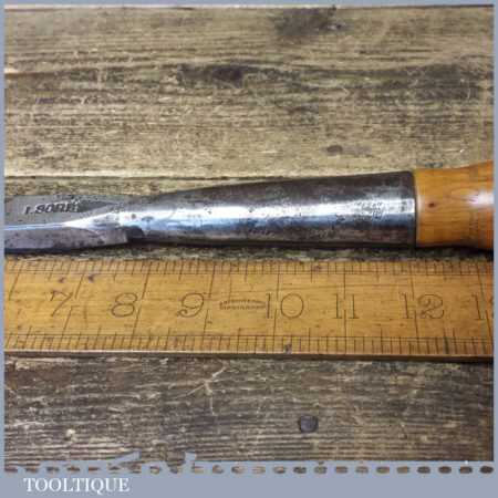 Vintage I. Sorby carpenter’s timber framing 13/16” heavy duty socketed firmer chisel with ash handle in good used condition, fully refurbished sharpened and honed ready for use. Looks to have a hawthorn handle, very nice!