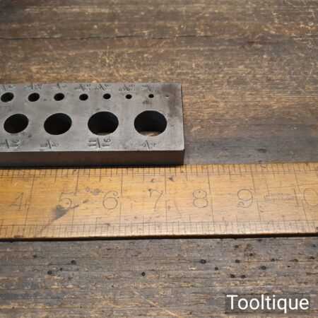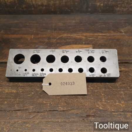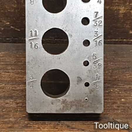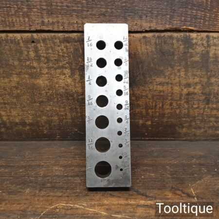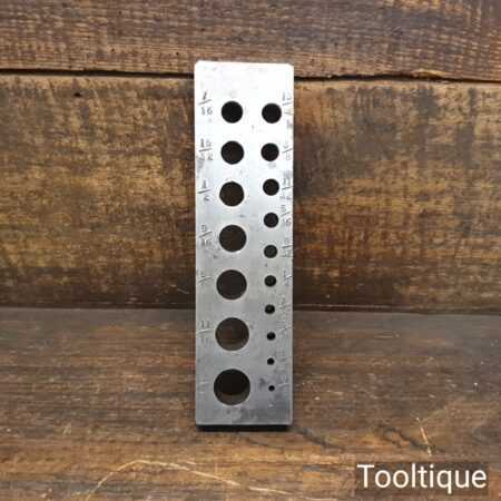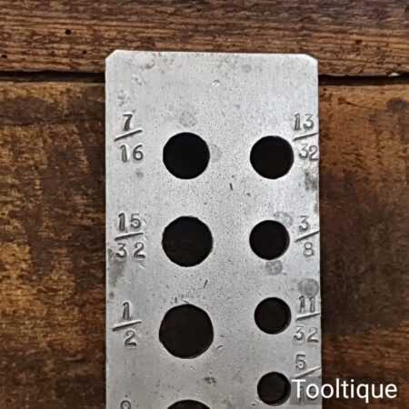 Vintage imperial gauged steel dowelling plate, also useful for sizing imperial drill bits in good used condition