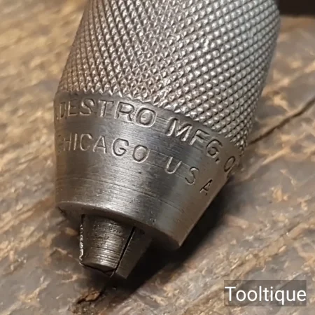 Vintage Indestro Mfg. Co. Chicago USA Carpenters Hand Brace to Drill Chuck Adapter, refurbished ready for use and in good used condition. Note: Internally cleaned and oiled.