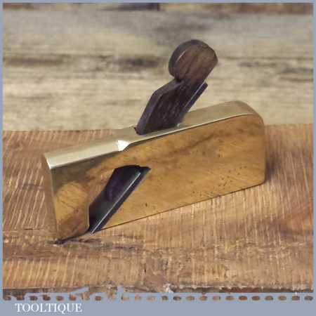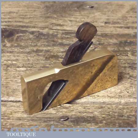 Vintage instrument maker’s miniature gunmetal rabbet plane with rosewood wedge and in good used condition. measuring 2 3/8” long and 5 1/6” wide