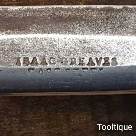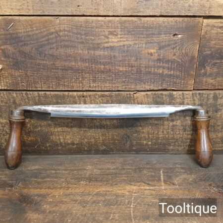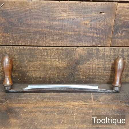 Vintage Isaac Greaves carpenter’s curved drawknife with a 10 ¼” cutting edge and beechwood handles, refurbished, sharpened and honed ready for use and in good used condition.