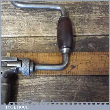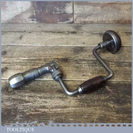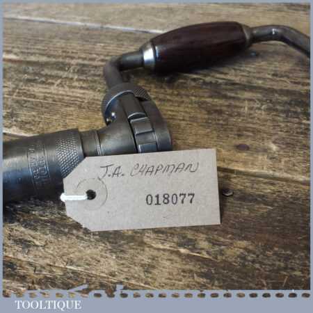 Vintage J. A. Chapman carpenter’s ratchet brace with rosewood handles and an 8” swing in good used condition, refurbished ready for use