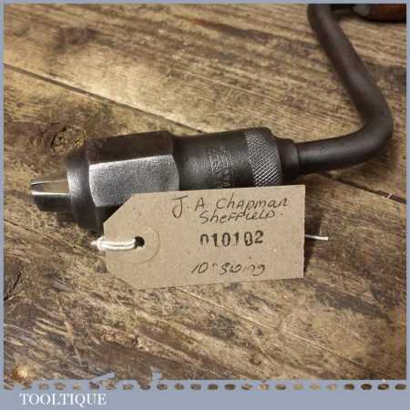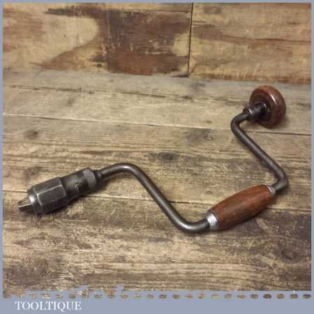 Vintage J. A. Chapman carpenters brace with wooden handles and a 10” swing, refurbished ready for use.